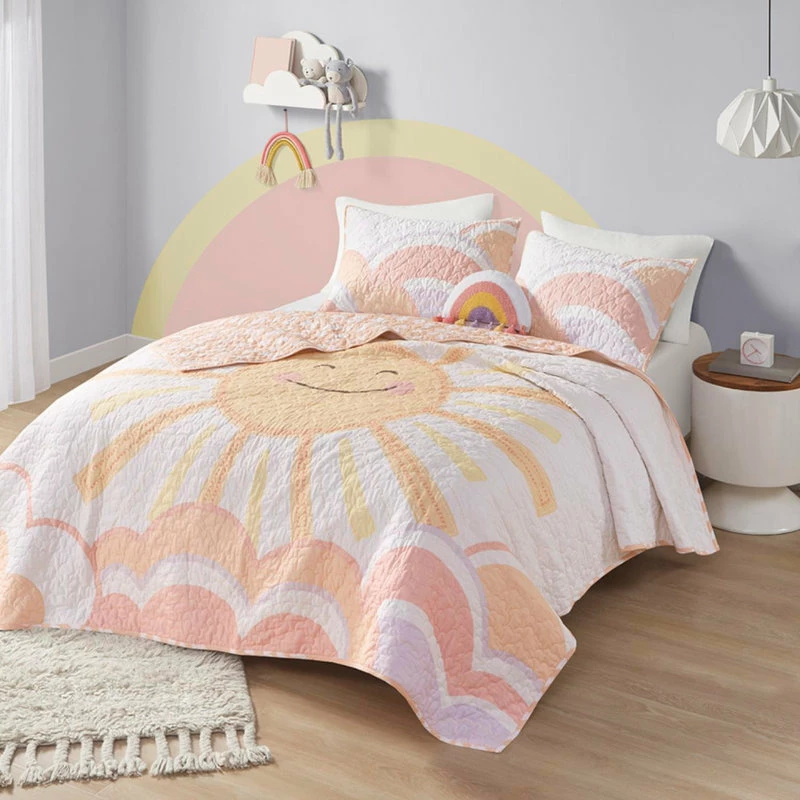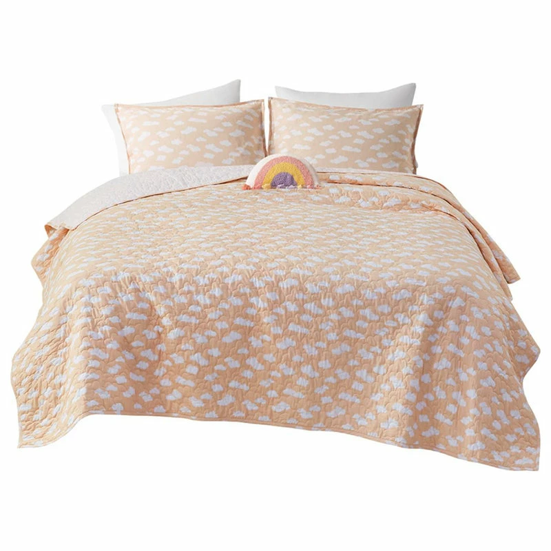 - Material: Coverlet/Sham: 100% cotton printed face and reverse, 5.9oz/sq yard cotton fill. Pillow: cotton cover and poly fill