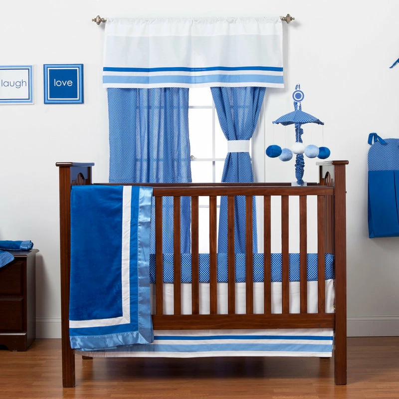 Simplicity Blue coordinating quilt is an overall universal quilt like no other. Soft minky on both sides make this the perfect blanket anytime and anywhere! Darker blue minky on both sides with accents framed in white and trimmed in our light blue satin trim. Not only does this quilt coordinate with the entire set you can also enjoy using this outside the crib and for years to come! Size: 40×49