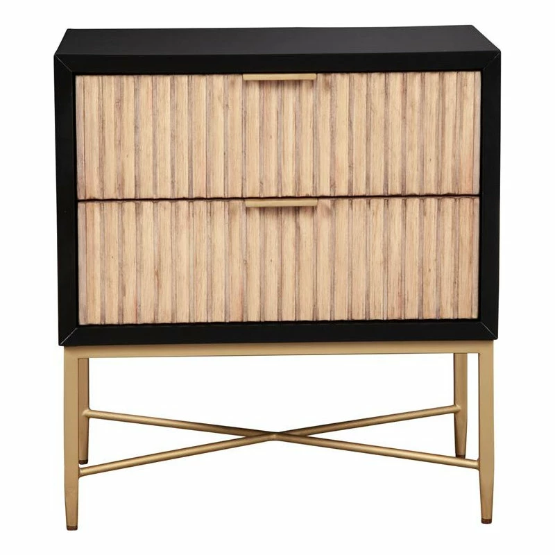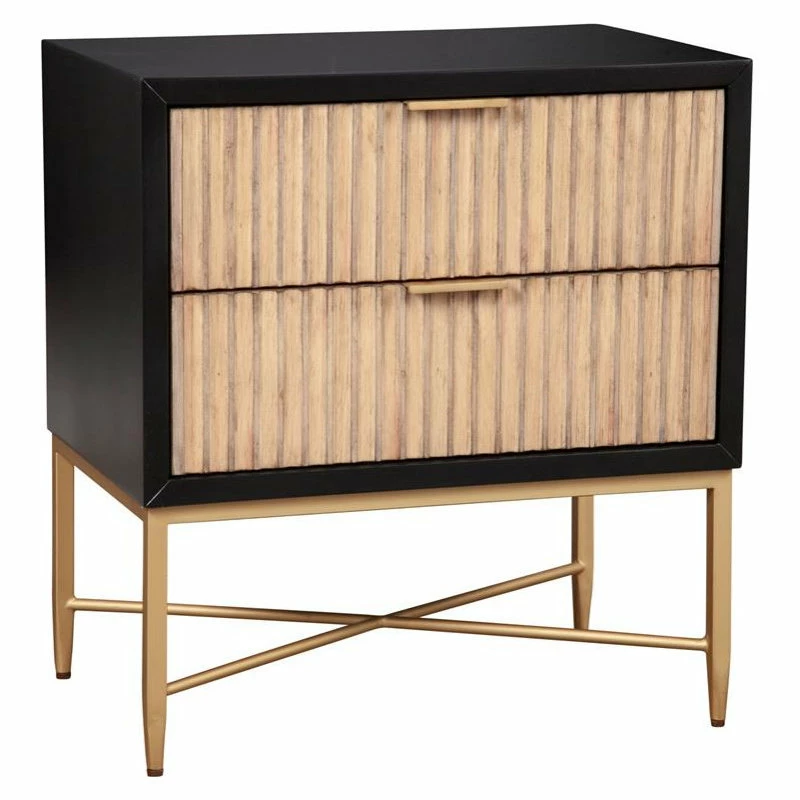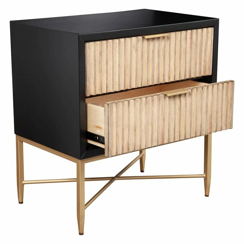 Make a fashion statement in your bedroom with the Larsen 2 drawer nightstand. This nightstand offers plenty of appeal and stylish functionality. Featuring Mahogony solids and veneers in a gorgeous black finish. There is plenty of storage space for all your bedside storage needs.