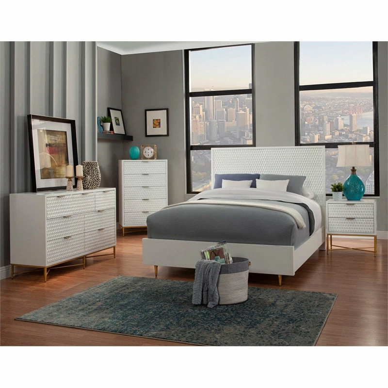- Coordinates with other pieces from the Origins by Alpine White Pearl bedroom collection