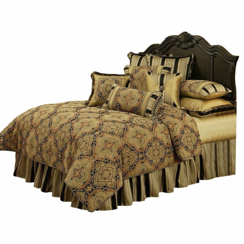 Set includes: one (1) comforter, one (1) bed skirt, two (2) shams