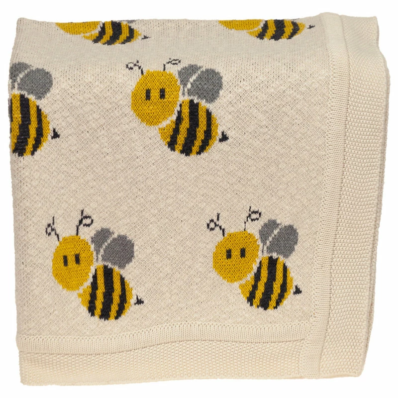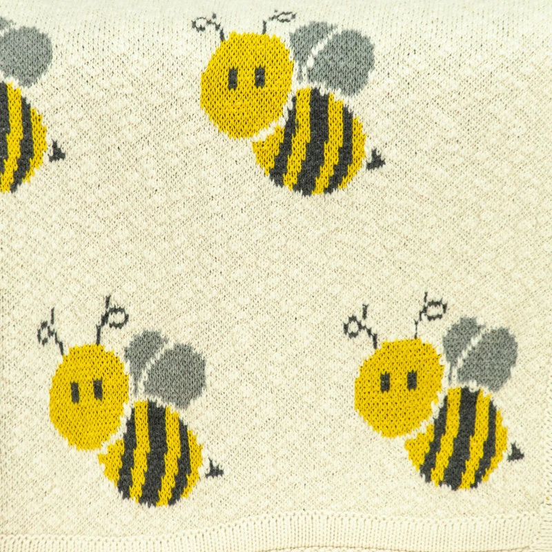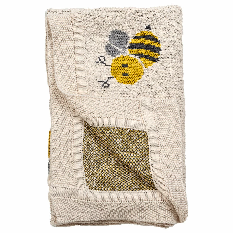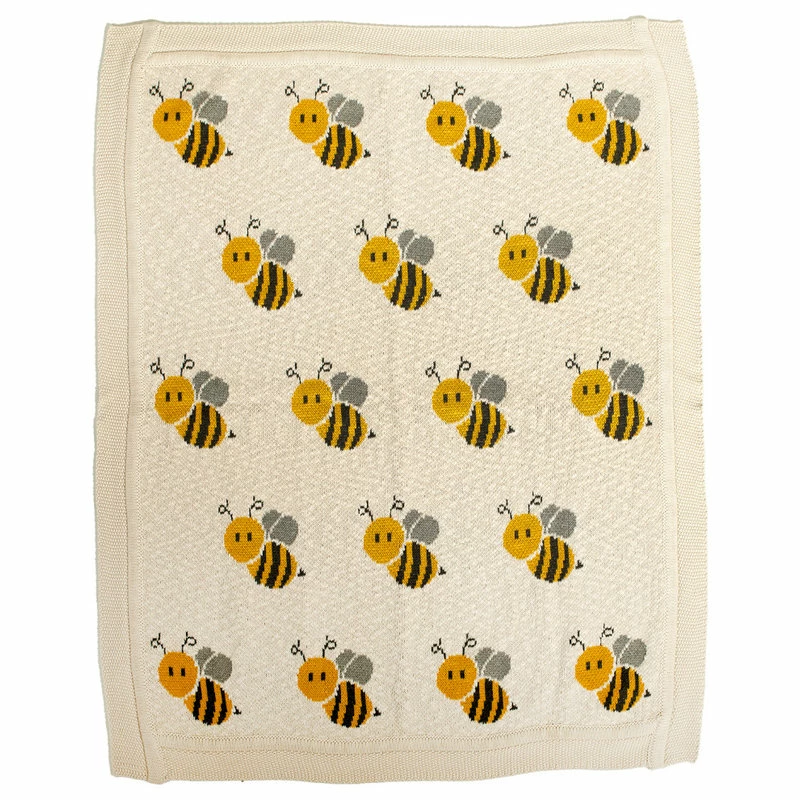 it’s time for snuggling up! This knitted baby blanket featuring little busy buzzing bees will keep them warm and cozy.