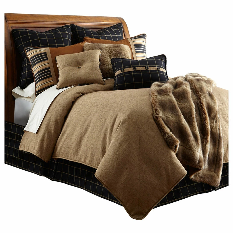 The Ashbury collection includes a classic menswear tweed combined with a yarn dyed stripe and woven check to create a handsome lodge statement. This cozy collection also includes faux suede and button details. A wide variety of coordinating accessories are available sold separately.