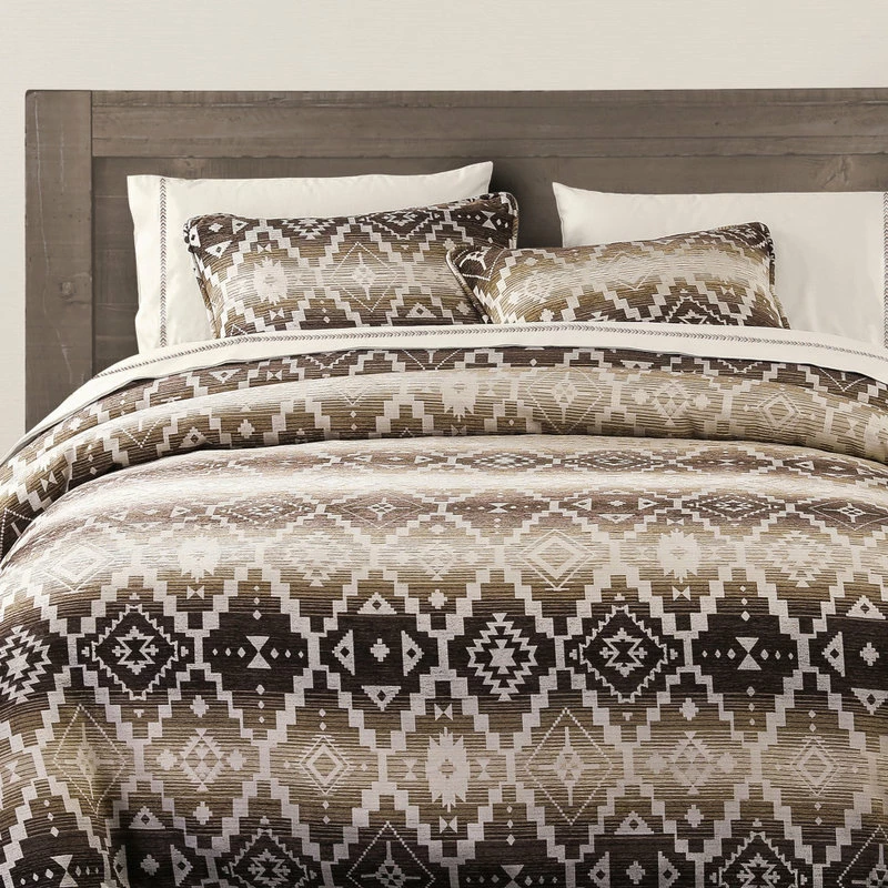 We’ve updated the lodge look in Chalet, a striking earth-tone take on Aztec patterns. In rich, versatile shades of tobacco, taupe, mocha, and cream, the collection makes a powerful visual statement. Soft fabrics give Chalet bedding a luxuriously relaxed feel. It’s also available in window treatments, bath towels, and bath accessories, for a coordinated master suite. We’ve rendered a similar pattern in ceramic for our Chalet dinnerware, which is bordered in a sleek, modern black.