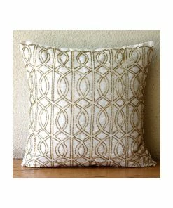 The HomeCentric Lattice Trellis Beaded Ivory Pillow Shams, Art Silk 24×24 Pillow Sham, Gold Taj
