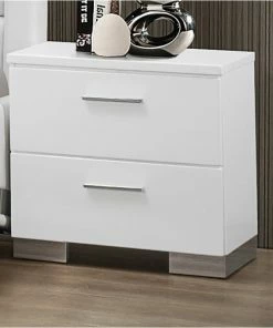 Coaster Home Furnishings Coaster Felicity 2 Drawer Nightstand In Glossy White And Chrome