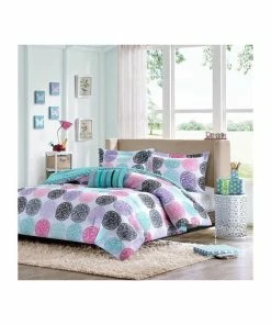 Olliix Mi Zone Microfiber Printed Ruffled Comforter Set, Full/Queen