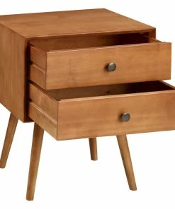 Walker Edison Mid-Century 2 Drawer Solid Wood Nightstand, Caramel