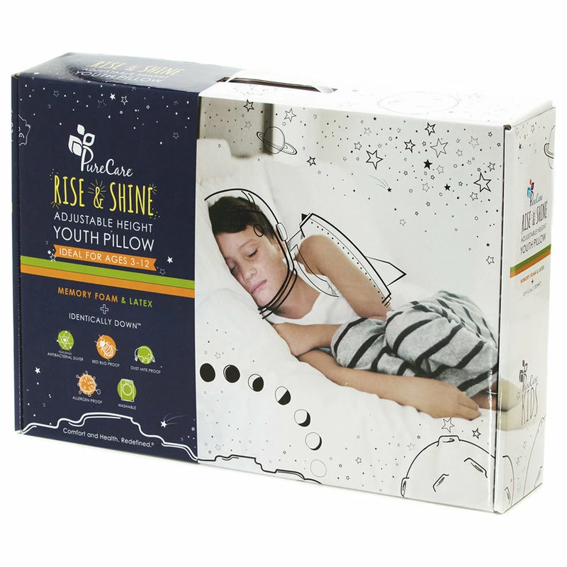 The Rise & Shine Adjustable Height Pillow contains two insert layers – one each of Latex and the other of Memory Foam for all an around yummy night’s sleep for your child. He or she can adjust the thickness, firmness or bounce by adding or removing the 2 layers. And more importantly, the pillow can grow with your child with the insertion of the inner component layers. Great for years of support and comfort and fully adjustable. The memory foam & Latex components are fully ventilated for coolness all night long. Fully washable. 21″X16″.