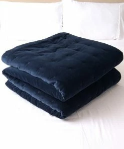Best Home Fashion Velvet And Cotton Tufted Quilt, Navy, Queen