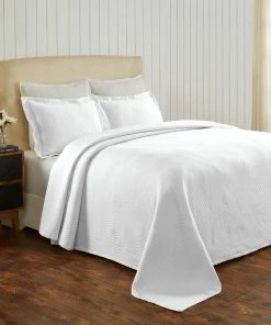 Blue Nile Mills Jacquard Matelassé Cotton Basketweave 3-Piece Bedspread Set, White, King