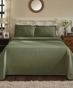 Blue Nile Mills Jacquard Textured Bedspread And Pillow Sham Set, Sage, Twin