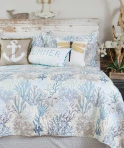 Calla Angel Saint Ivory Luxury Pure Cotton Quilt, Light Aqua, Queen