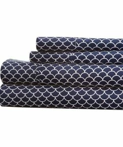 Ienjoy Home Becky Cameron Scallops Pattern 4 Piece Bed Sheet Set, Navy, King