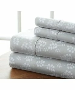 Ienjoy Home Home Collection Premium 4-Piece Ribbon Printed Bed Sheet Set, Queen, Gray