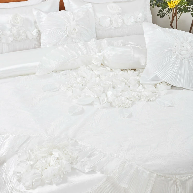 Tache Home Fashion 6-Piece White Sweet Victorian Satin Comforter Bedding Set, Queen
