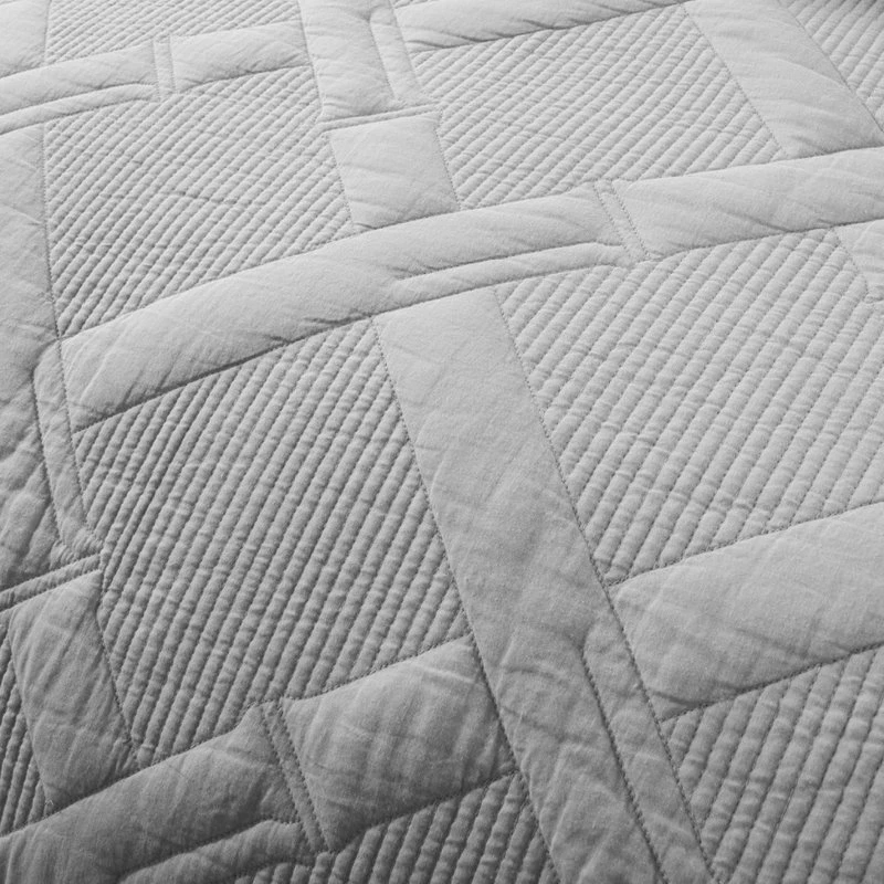 Tache Home Fashion Light Grey Silver Diamond Pastel Cotton Bedspread Set, 18 X 18