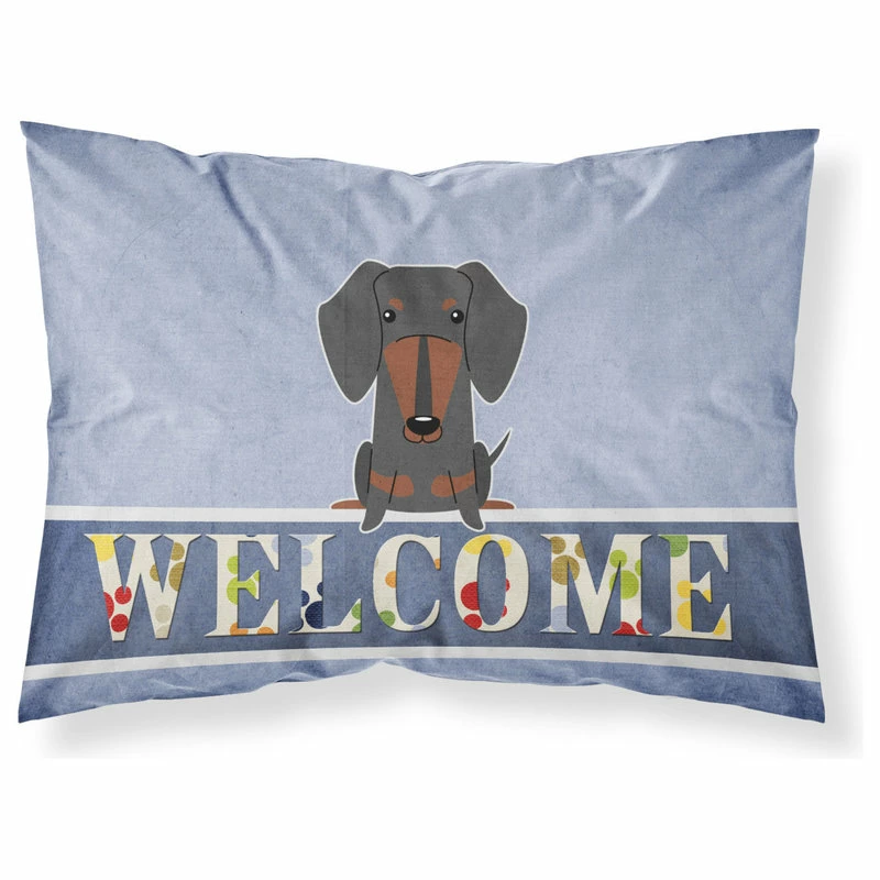 The-store Dachshund Black Tan Welcome Fabric Standard Pillowcase