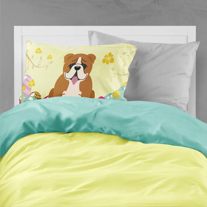 The-store Easter Eggs English Bulldog Fawn White Fabric Standard Pillowcase