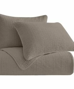 HiEnd Accents Stonewashed Cotton Velvet Quilt Set, Full/Queen, Taupe, 3 Piece