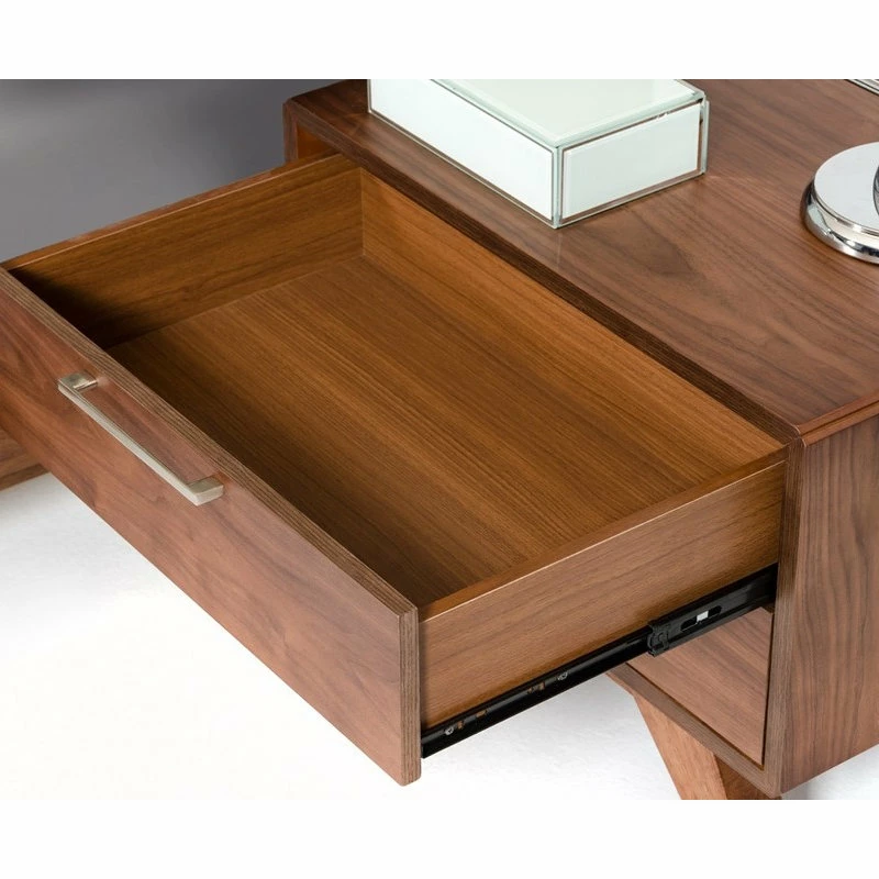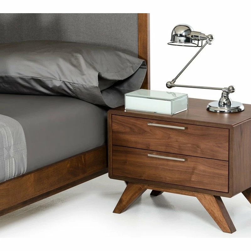 Inspired by classic mid century designs, the Nova Domus Soria Nightstand boasts an elegant walnut veneer finish and four tapered feet. It features two drawers for storing bedtime essentials, both with sleek stainless steel handles. Pair with the matching dresser and chest for a cohesive bedroom aesthetic.